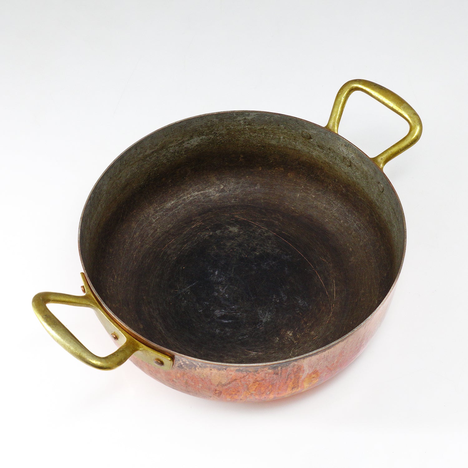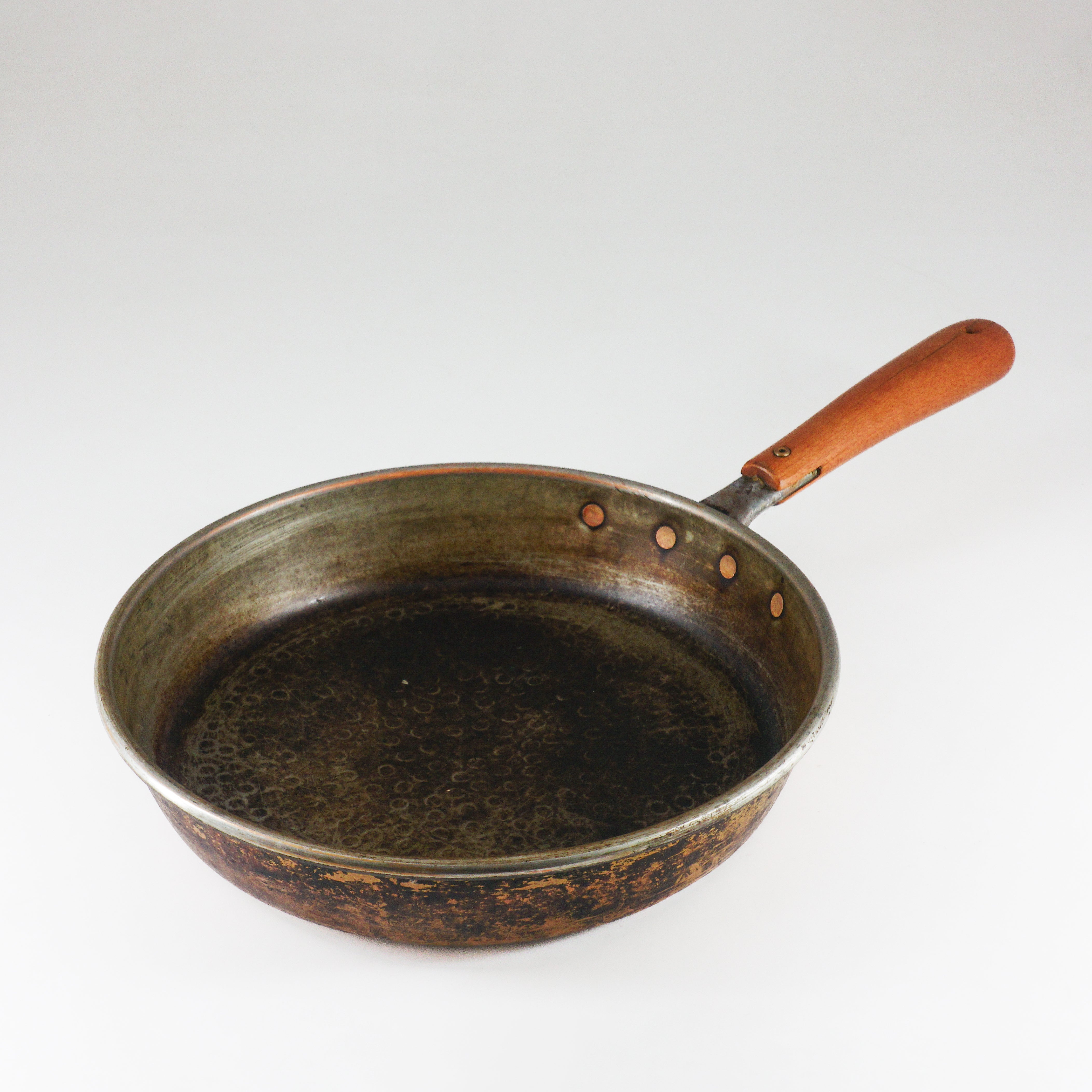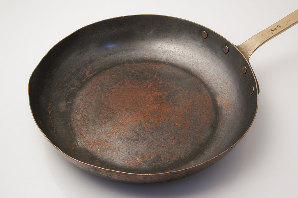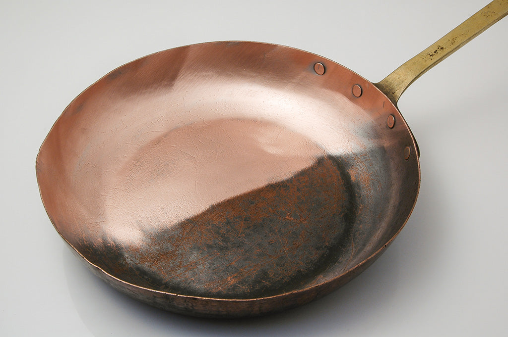 In caso di ristagnatura, il pentolame deve sempre essere riportato a rame, prima dell'applicazione di un nuovo strato, come mostrato nella prima foto.